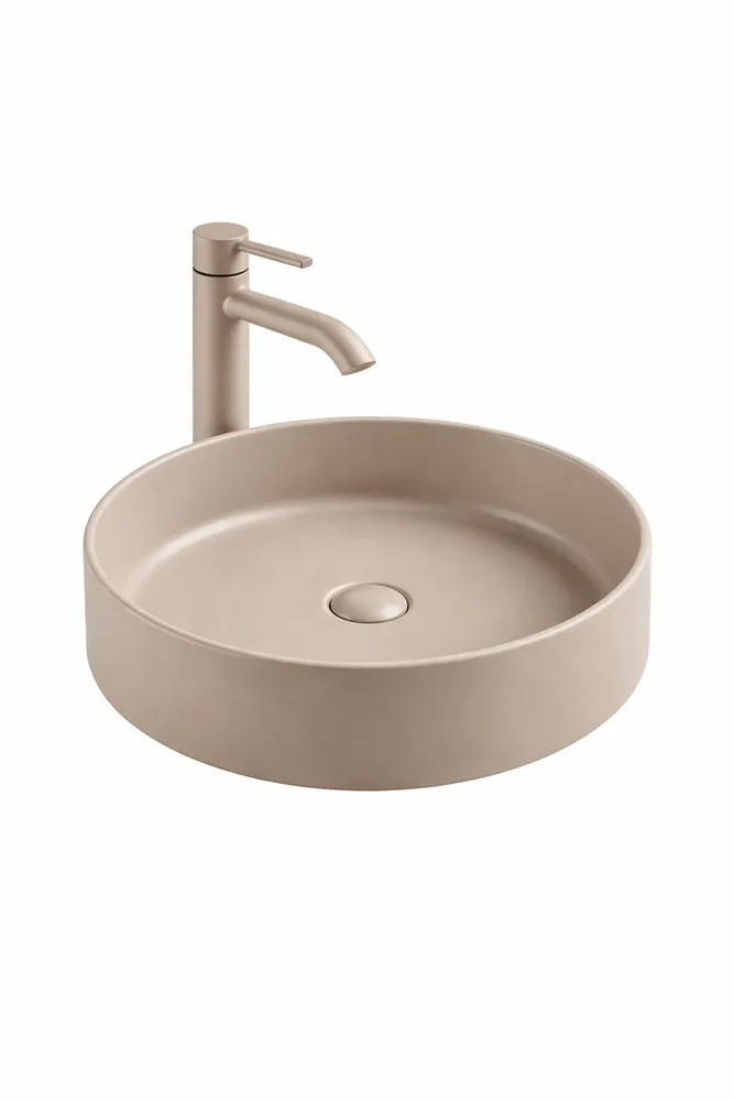 כיור רחצה מונח חרס עגול קוטר 36 ס"מ צבע מוקה מט דגם ויגו