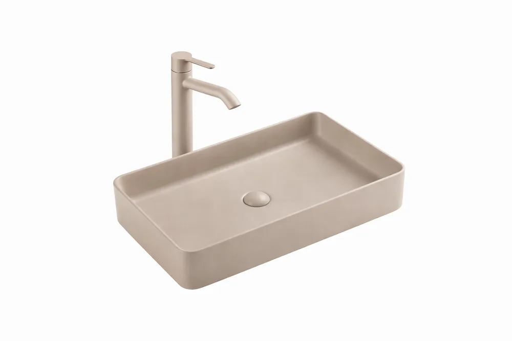 כיור רחצה מונח חרס מלבני רוחב 50 ס"מ ועומק 34 ס"מ צבע מוקה מט דגם וולוס