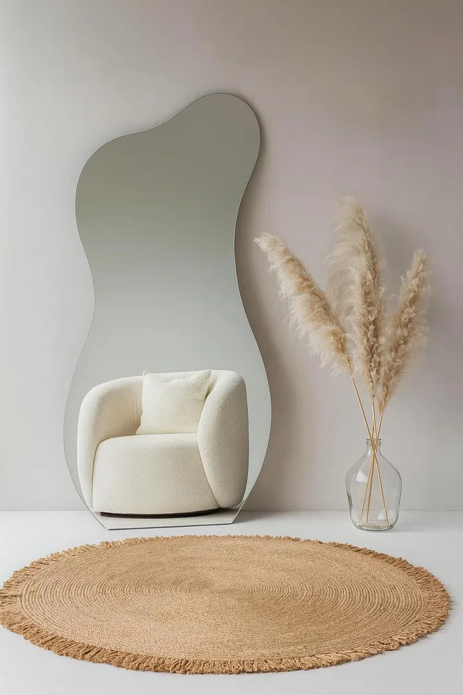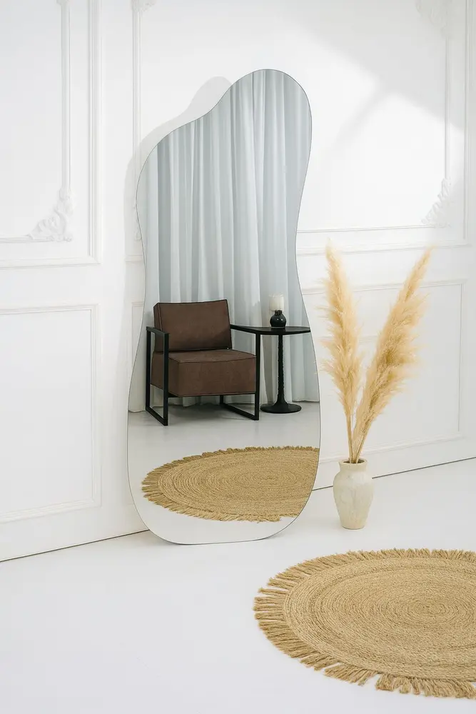מראת גוף מרחפת בצורה אמורפית לתליה ללא מסגרת רוחב 70 ס"מ גובה 180 ס"מ דגם LM-55