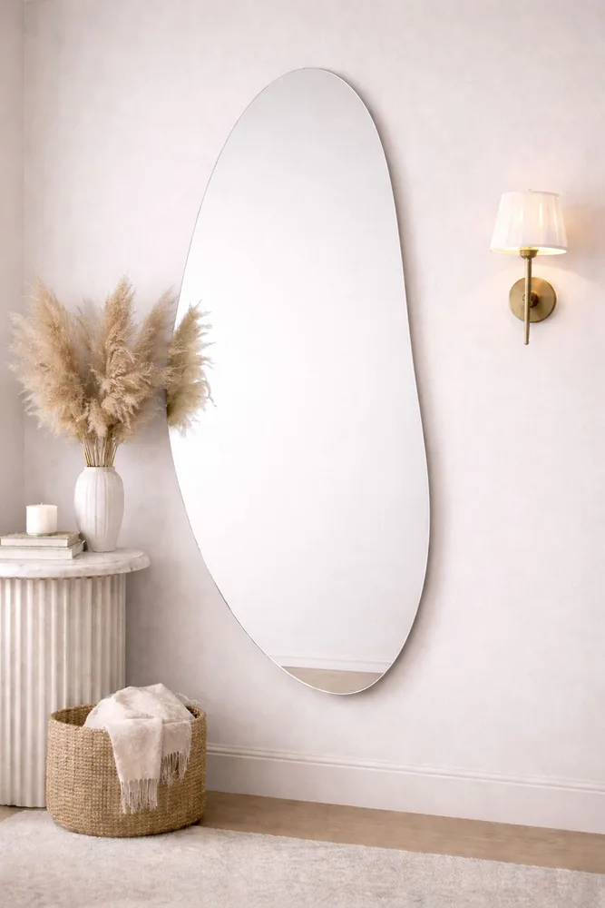 מראת גוף מרחפת בצורה אמורפית לתליה ללא מסגרת רוחב 70 ס"מ גובה 180 ס"מ דגם LM-56