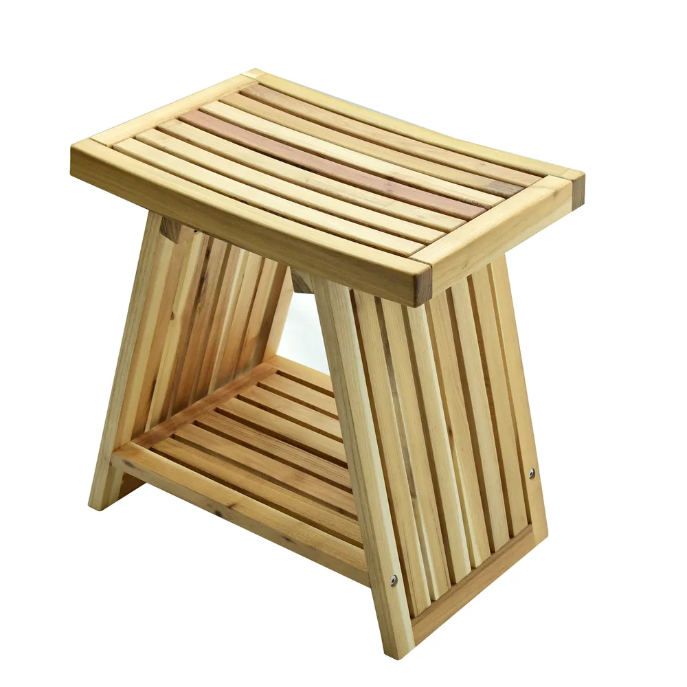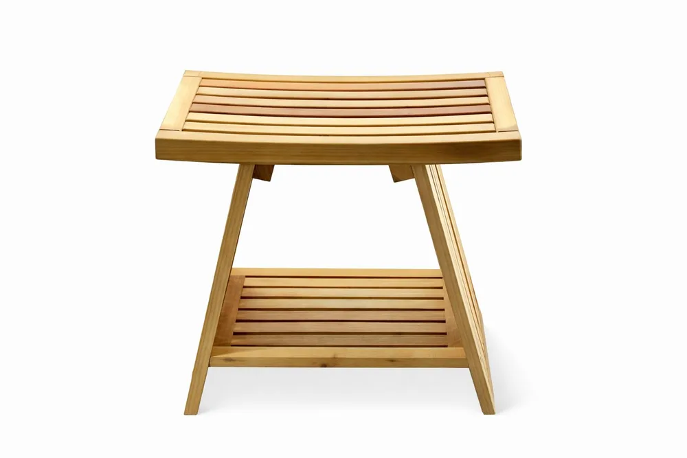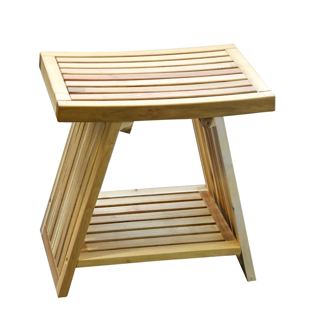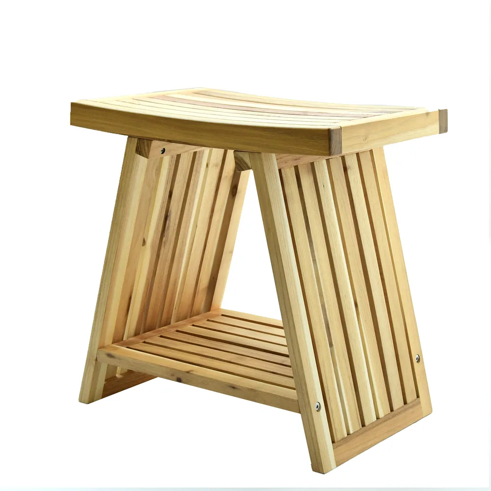 ספסל עץ טיק מלא לישיבה במקלחת מיועד לחדרים רטובים רוחב 45 ס"מ דגם מארן