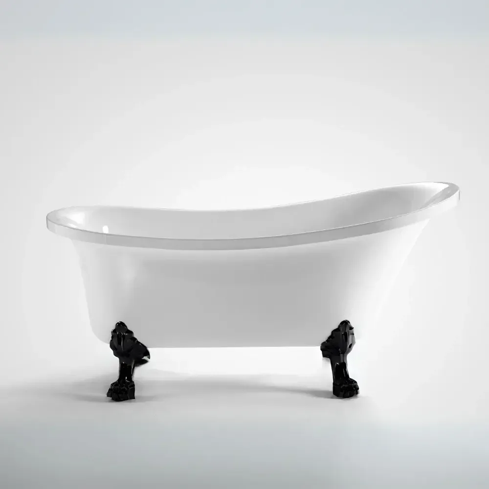 אמבטיה מונחת אובלית עם רגליות לבחירתך עשויה מחומר אקרילי מוחזקת בפייברגלס אורך 150 ס"מ צבע האמבטיה לבן מבריק דגם Mexico 150