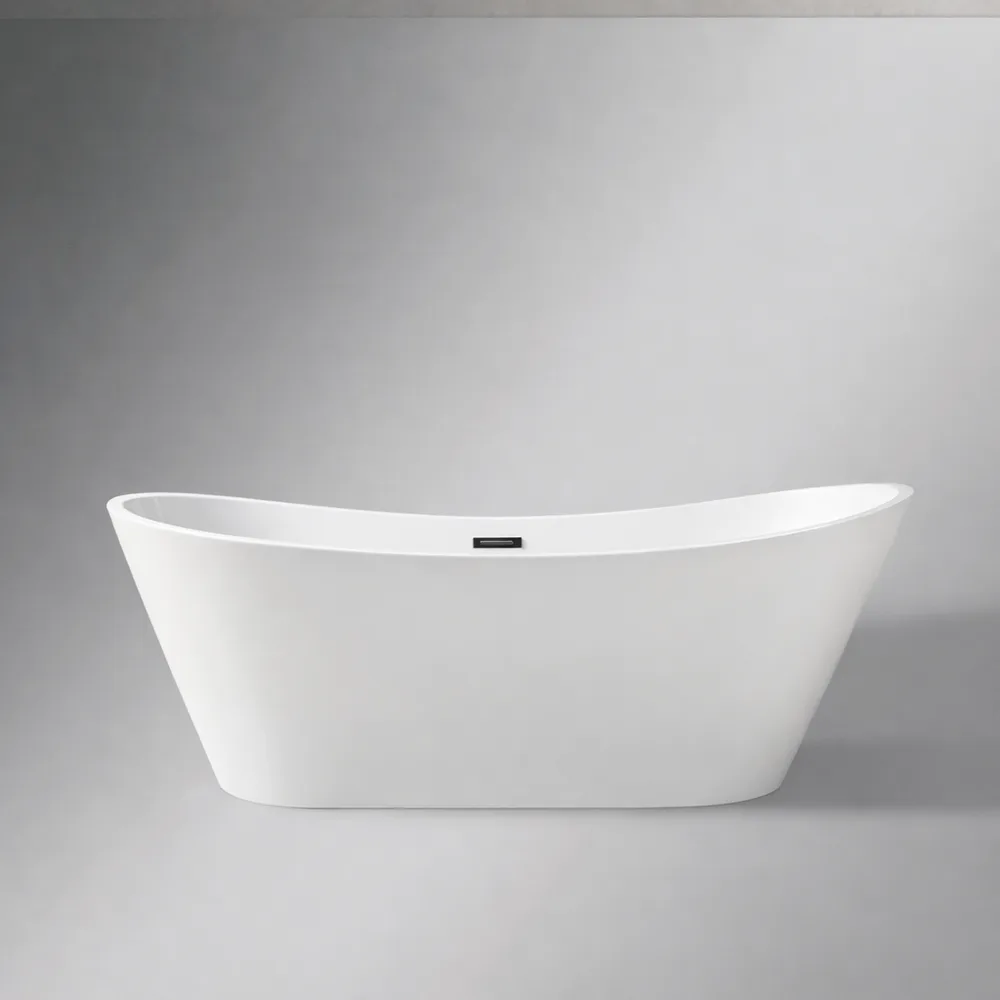 אמבטיה מונחת אובלית עשויה מחומר אקרילי מוחזקת בפייברגלס אורך 170 ס"מ צבע לבן מבריק דגם Kips