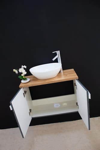ברז, מראה, כיור מונח, ונטיל וכל מוצר אחר שמשלים עיצוב הארון להמחשה בלבד