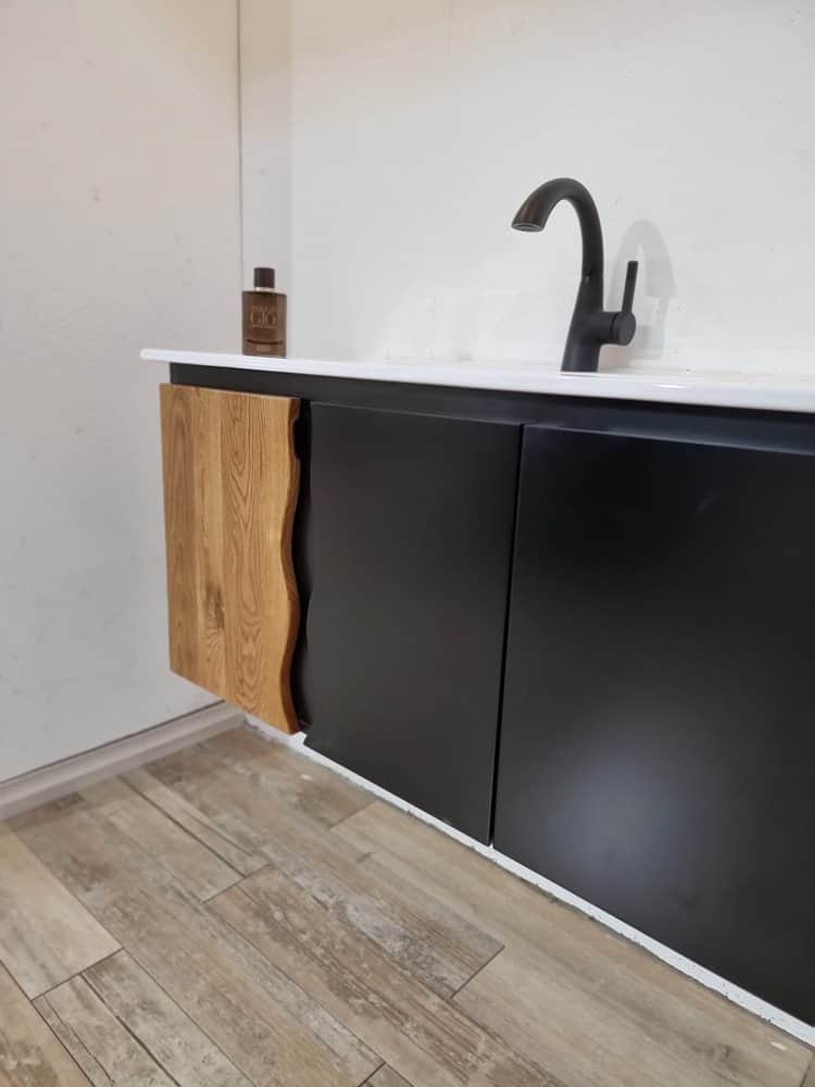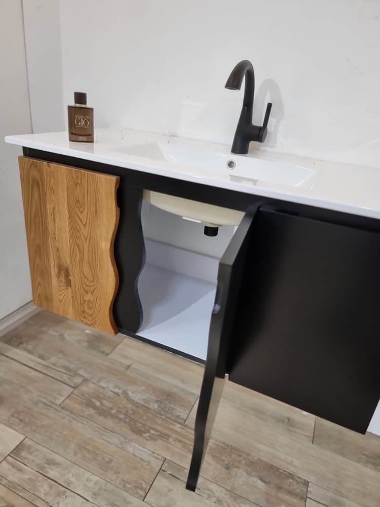 ארון אמבטיה תלוי רוחב 100 ס"מ בעומק 46 ס"מ צבע שחור מט עם כיור משטח חרס שקוע דגם מילאנו 100