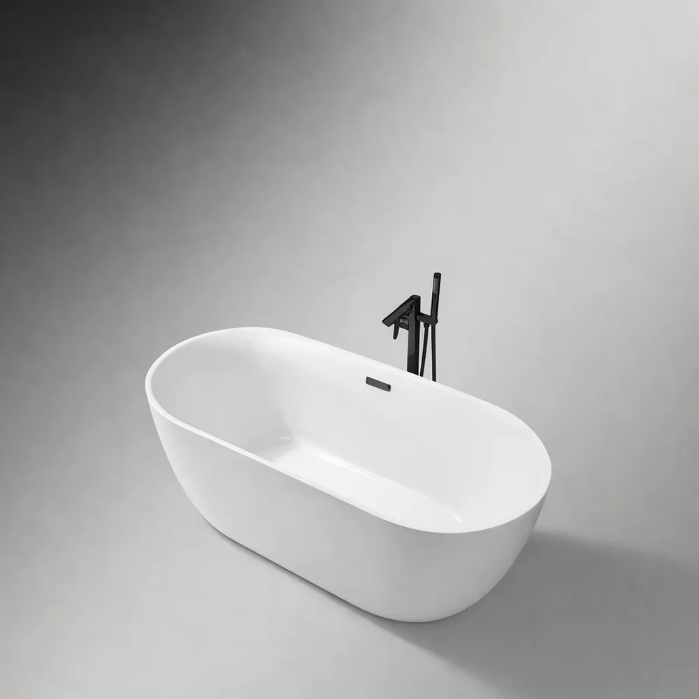 אמבטיה מונחת אובלית עשויה מחומר אקרילי מוחזקת בפייברגלס אורך 170 ס"מ צבע לבן מבריק דגם Paris