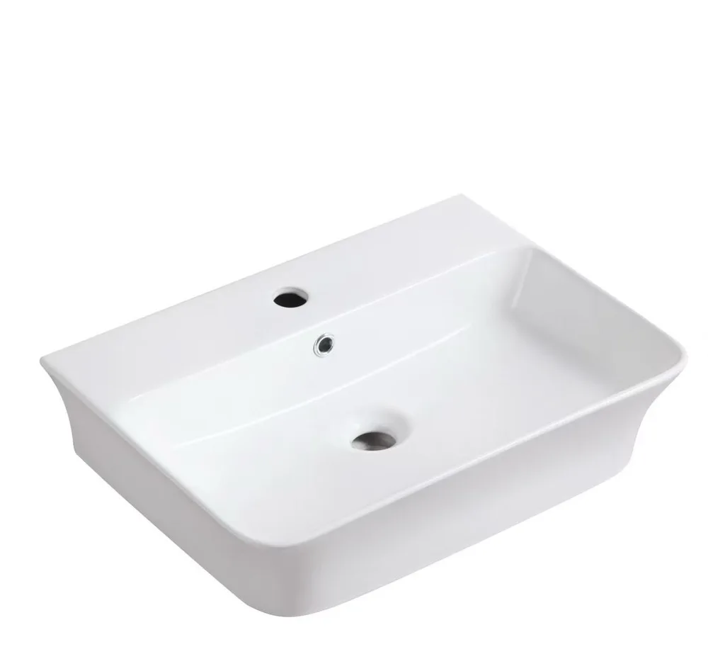 כיור רחצה מלבני ניתן להשתמש ככיור מונח או ככיור תלוי רוחב 55 ס"מ ועומק 40.5 ס"מ צבע לבן מבריק דגם פריה
