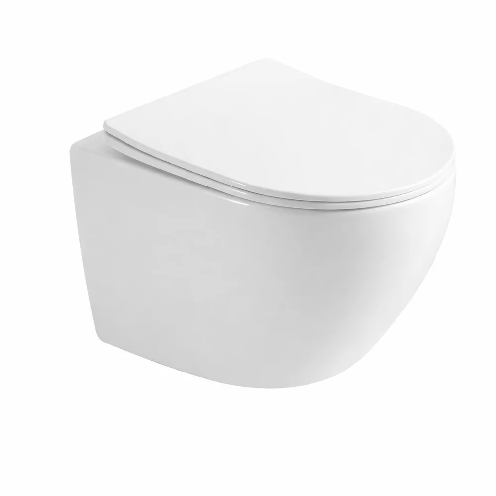אסלה תלויה מעוגלת אורך 53.5 ס"מ צבע לבן מבריק עם שטיפת Tornado ומושב קשיח טריקה שקטה ונשלף דגם קראטיה