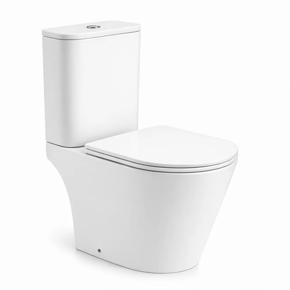 סט מונבלוק חרס מעוגל לבן מבריק שטיפת Tornado כולל מושב טריקה שקטה ומנגנון הדחה דגם טינוס