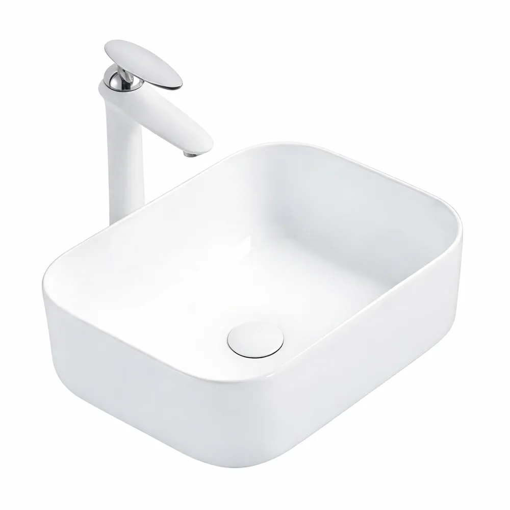 כיור רחצה מונח חרס מלבני רוחב 40 ס"מ ועומק 30 ס"מ צבע לבן מבריק דגם יוניה