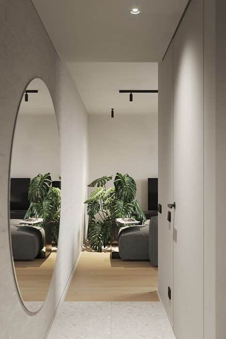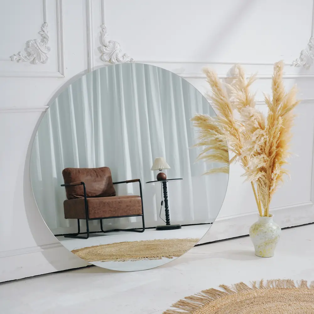 * עיצוב: מראת גוף בצורה עגולה מרחפת בלי מסגרת ובלי קנט שיפוע בקצה (חלקה)