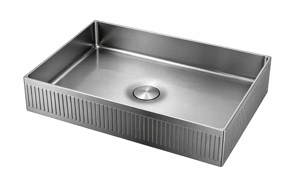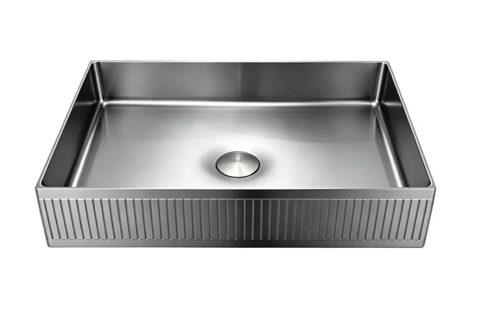 כיור רחצה מונח מלבני בעיצוב פסים עשוי מנירוסטה רוחב 50 ס"מ ועומק 35 ס"מ צבע גרפיט מט PVD דגם HS-1103