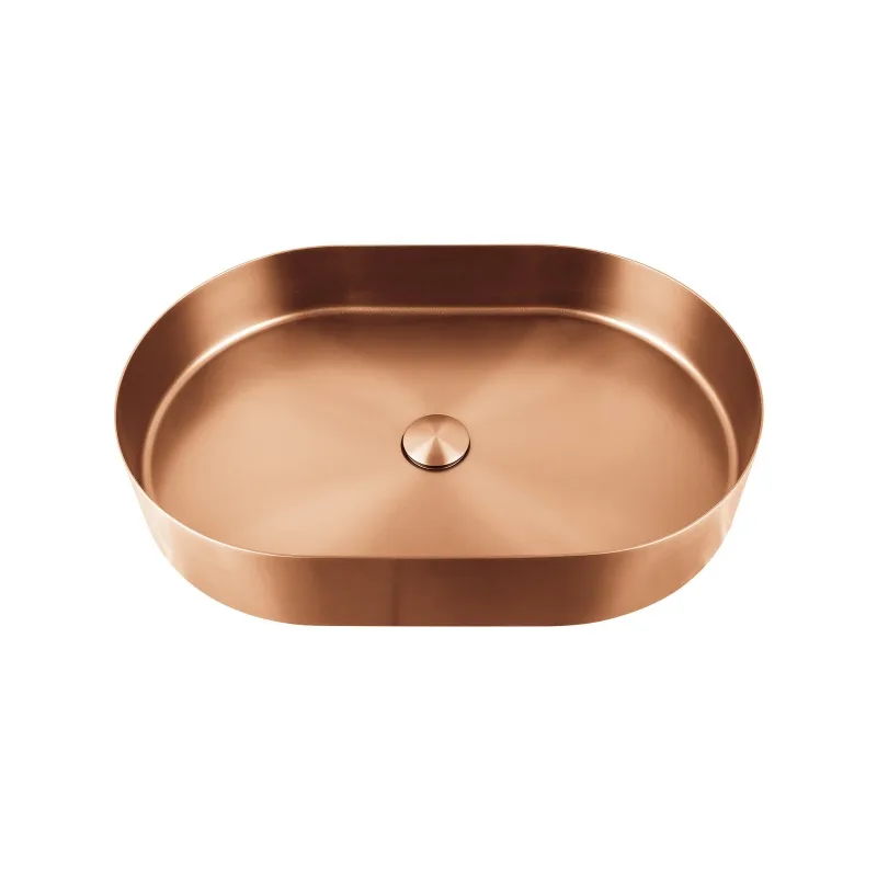 כיור רחצה מונח אובלי בעיצוב חלק עשוי מנירוסטה רוחב 58 ס"מ ועומק 36 ס"מ צבע רוז גולד מט PVD דגם B-2463