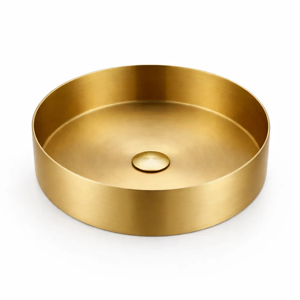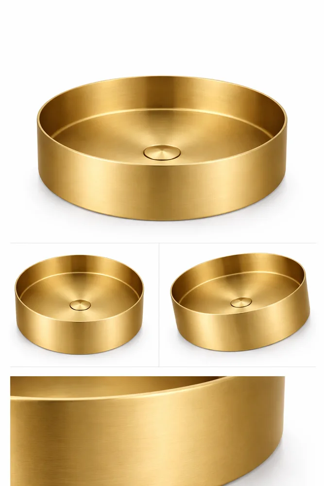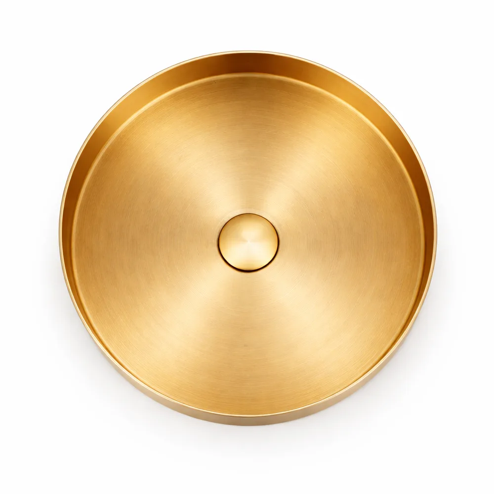 כיור רחצה מונח מעוגל בעיצוב חלק עשוי מנירוסטה קוטר 36 ס"מ צבע זהב מט PVD דגם G-3345