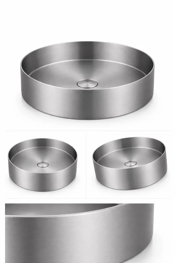 כיור רחצה מונח מעוגל בעיצוב חלק עשוי מנירוסטה קוטר 36 ס"מ צבע גרפיט מט PVD דגם H-2234
