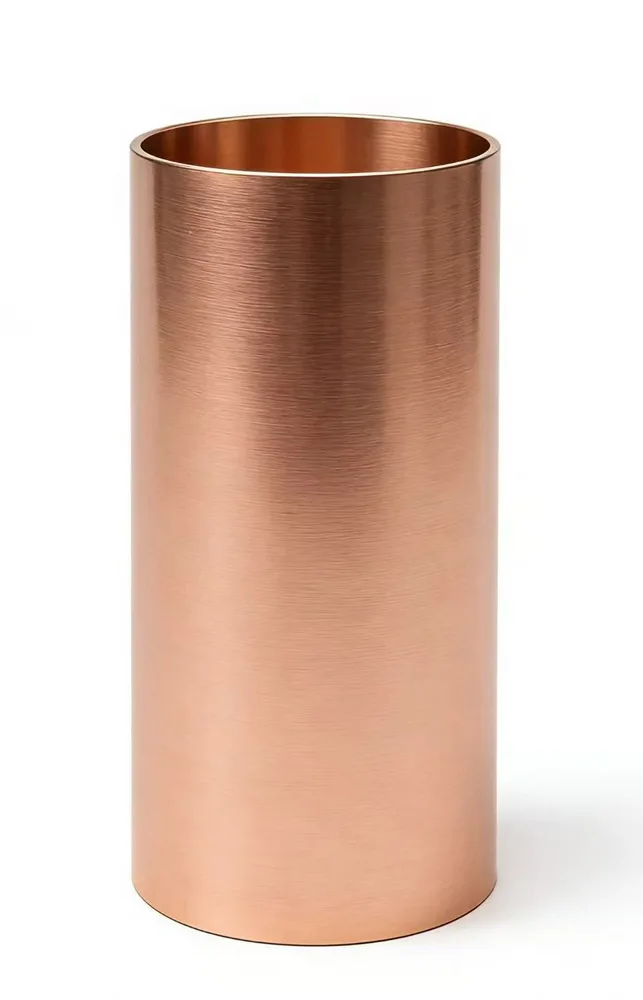 כיור רחצה עומד עשוי מנירוסטה מעוגל קוטר 38 ס"מ גובה 83 ס"מ צבע רוז גולד מט PVD בלי חור לברז דגם B-9892